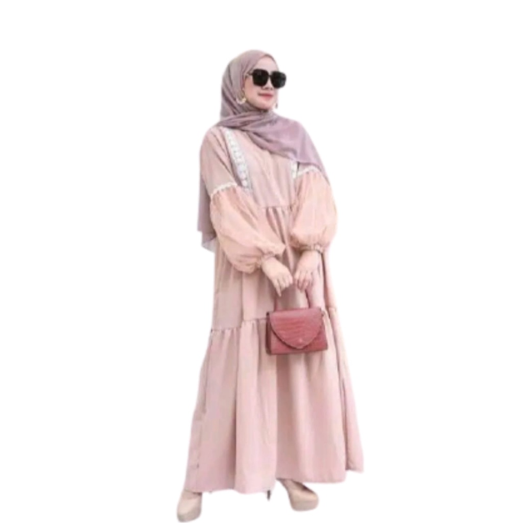 Dress remaja terbaru Hayla Dress Motif Renda mix tile | CASUAL WANITA Fashion Muslim Bisa dress muslim gamis remaja t