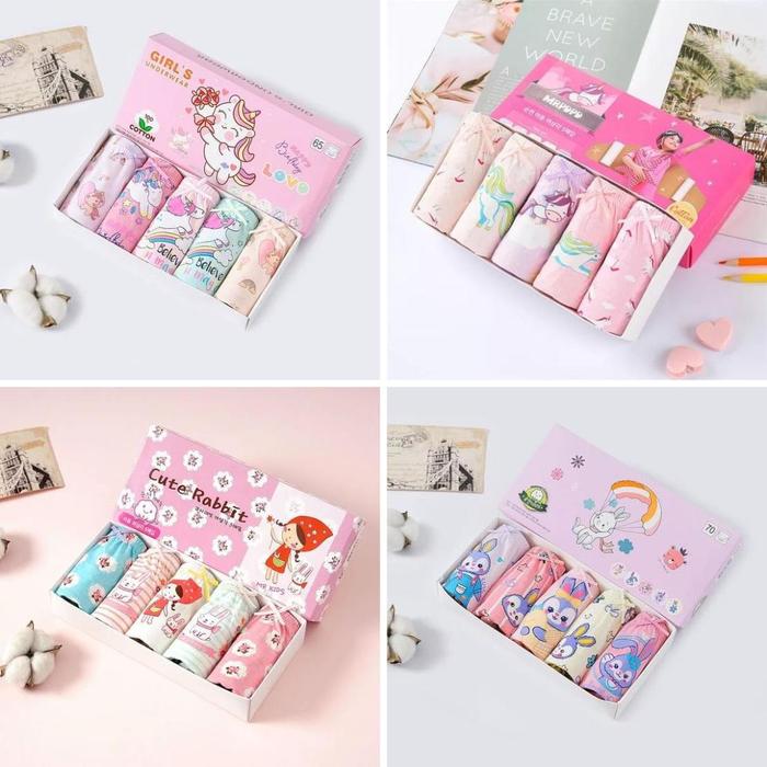 CELANA DALAM ANAK PEREMPUAN BOX BAHAN KATUN MOTIF KARAKTER LUCU / CD ANAK CEWEK FASHION 5 PCS - SWEET ANGEL, 60