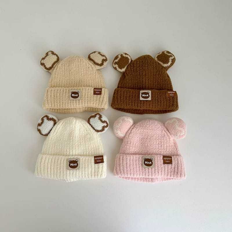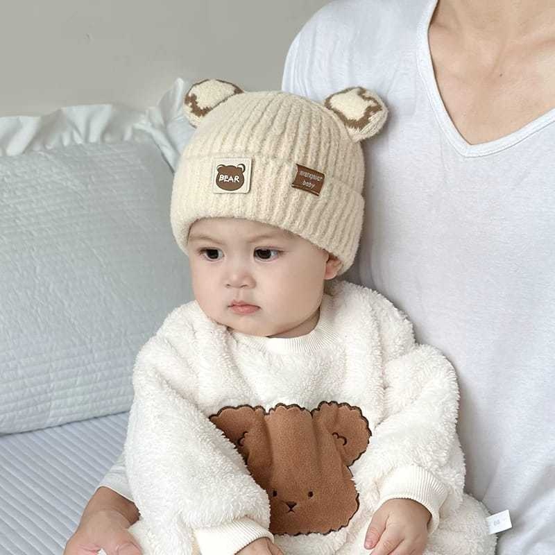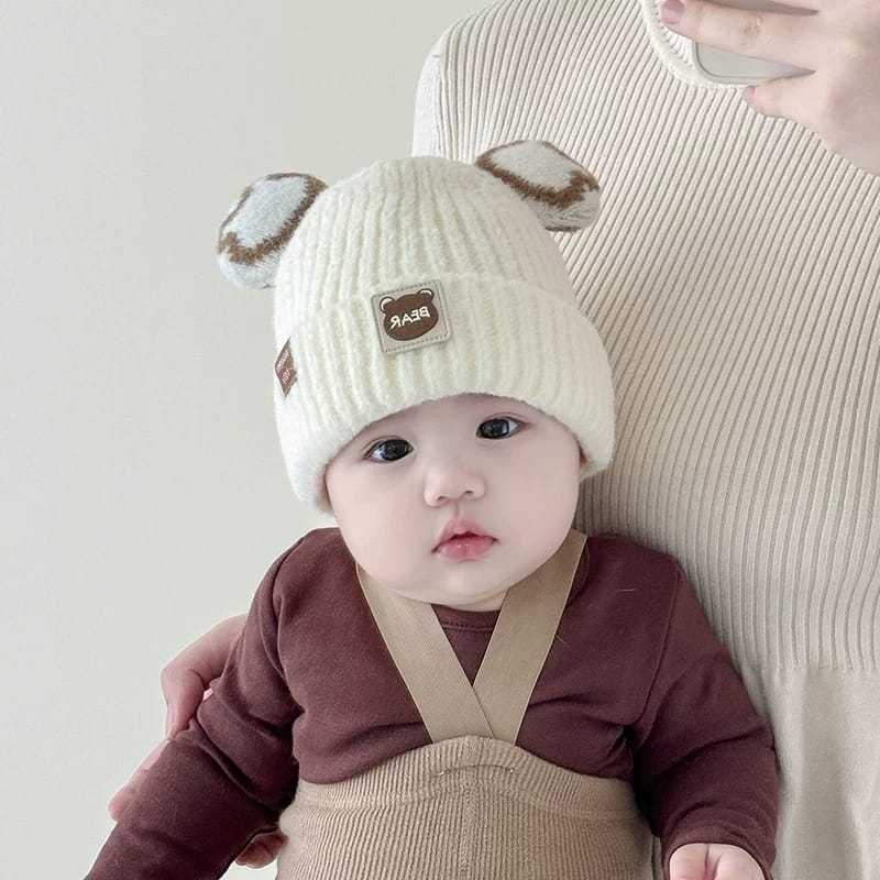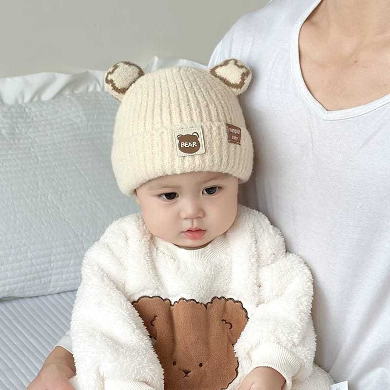 Brownieground Kupluk Bayi Rajut Halus Premium Motif Bear Lucu | Kupluk Bayi Untuk Usia 3-24 Bulan