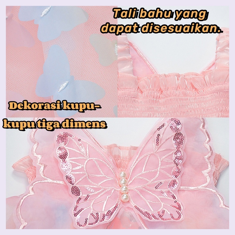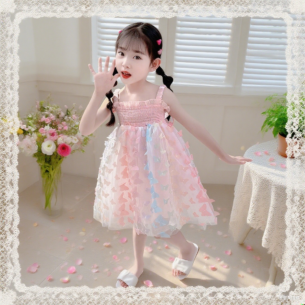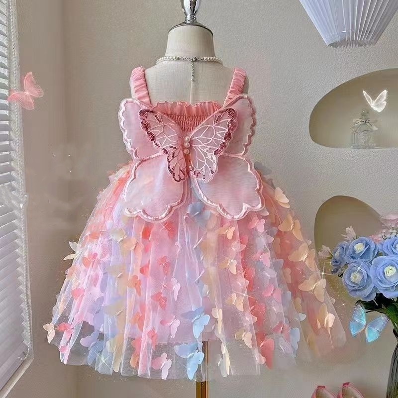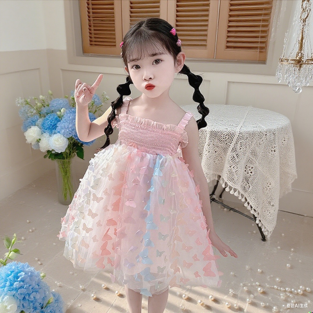 Beibei kids--1-6 Tahun Gaun Gadis Baru Modis Kepribadian Trendi Harta Wanita Gaun Peri Kupu-kupu Kasual Korea Dress Anak