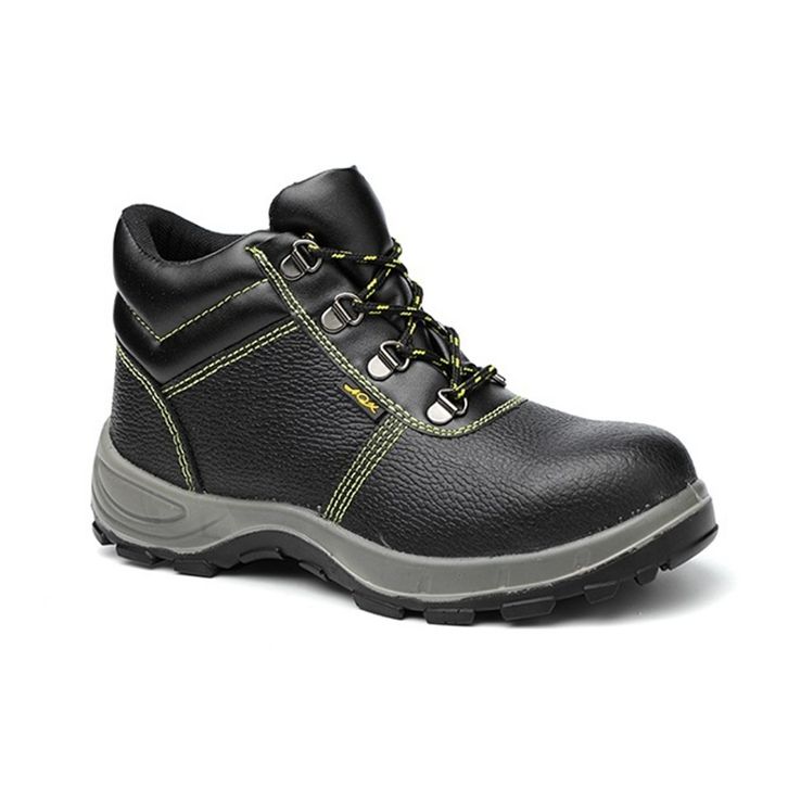 Sepatu Safety Shoes Pria Ujung Besi Middle Cut Hitam List Kuning 1066
