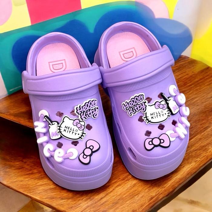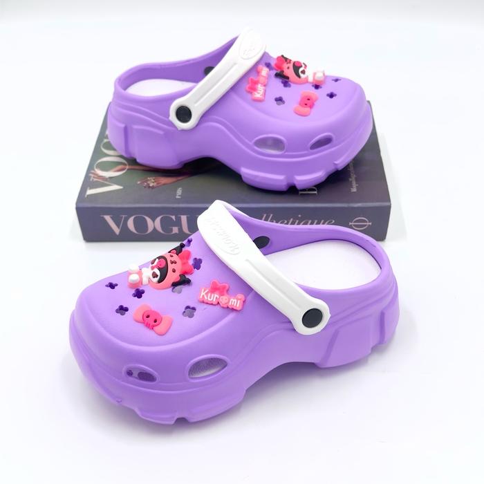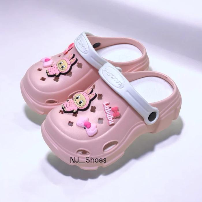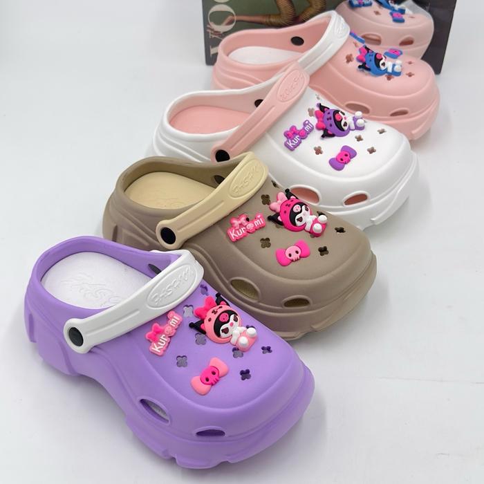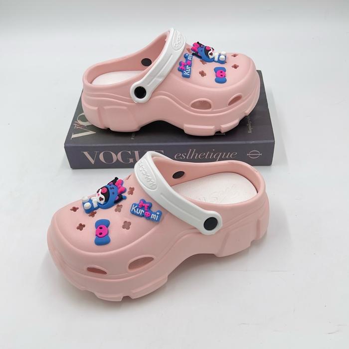 SENDAL SEPATU WEDGES BAIM ANAK PEREMPUAN JIBBITZ KUROMI KOMBINASI WARNA CANTIK TALI BELAKANG FASHION SANDAL ANAK PEREMPUAN - PINK, 24-25