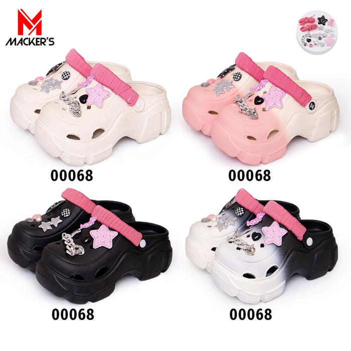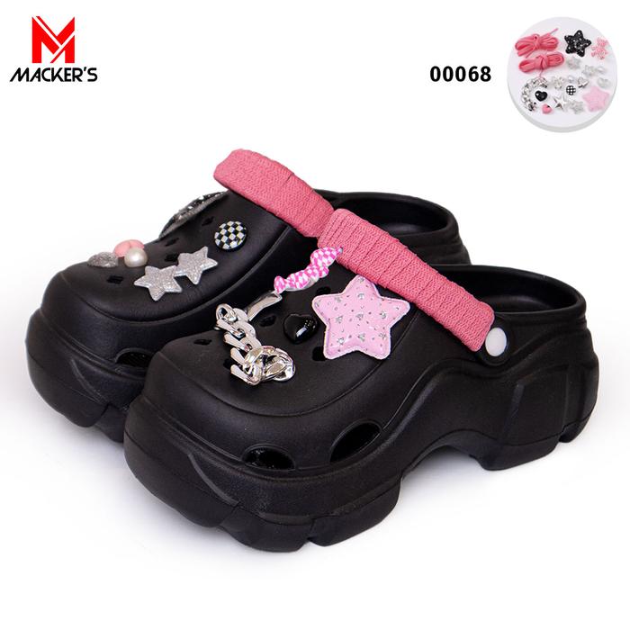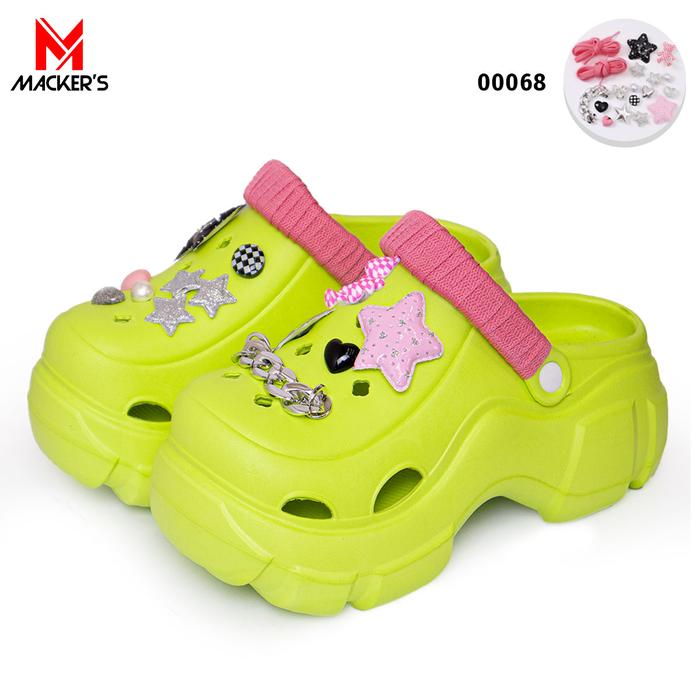 [MACKER'S] T01 +068 SANDAL BAIM SANDAL KODOK WANITA TERBARU DENGAN JIBBITZ BINTANG DAN RANTAI SANDAL WEDGES LUCU SEPATU KARET KEKINIAN STYLISH - XH-00068+T01-CREAM, 36