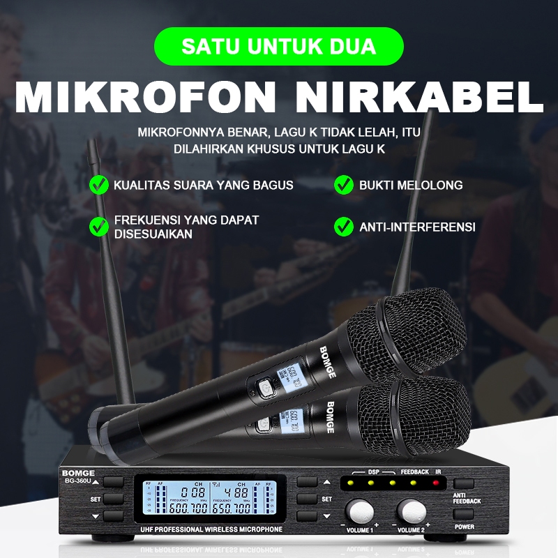 NEW ORIGINAL BOMGE 360U Sistem Mikrofon Nirkabel 2 Saluran UHF Pro 600 MHz 480 Channel 36 0U