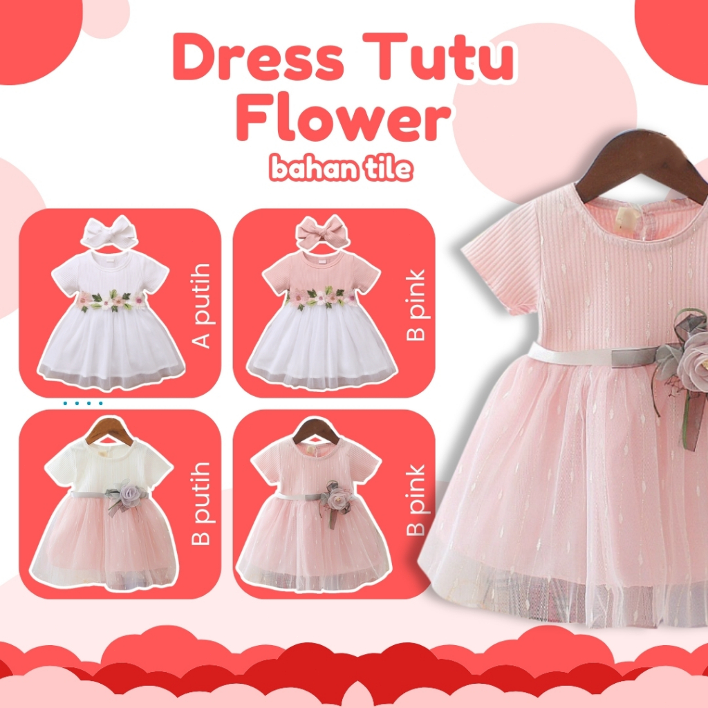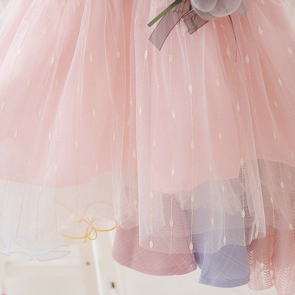 [Little Baby Bear] 0-2 Tahun Gaun Anak Perempuan Pita Bunga Perangai Dress Putri Lengan Pendek Tambal Sulam Gadis Tutu