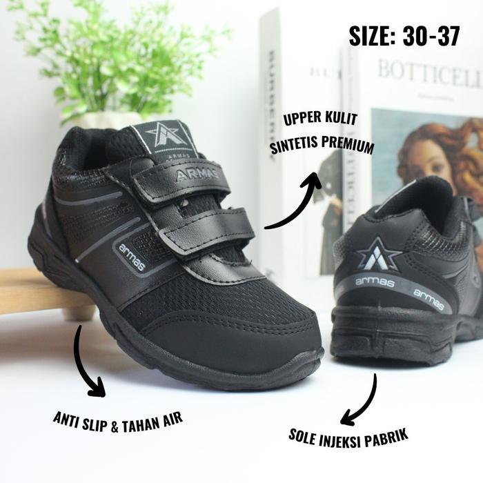 SEPATU SEKOLAH FORMAL ANAK INJECT HITAM POLOS COCOK UNTUK CEWEK COWOK - RV, 33