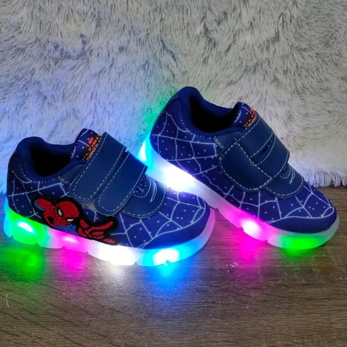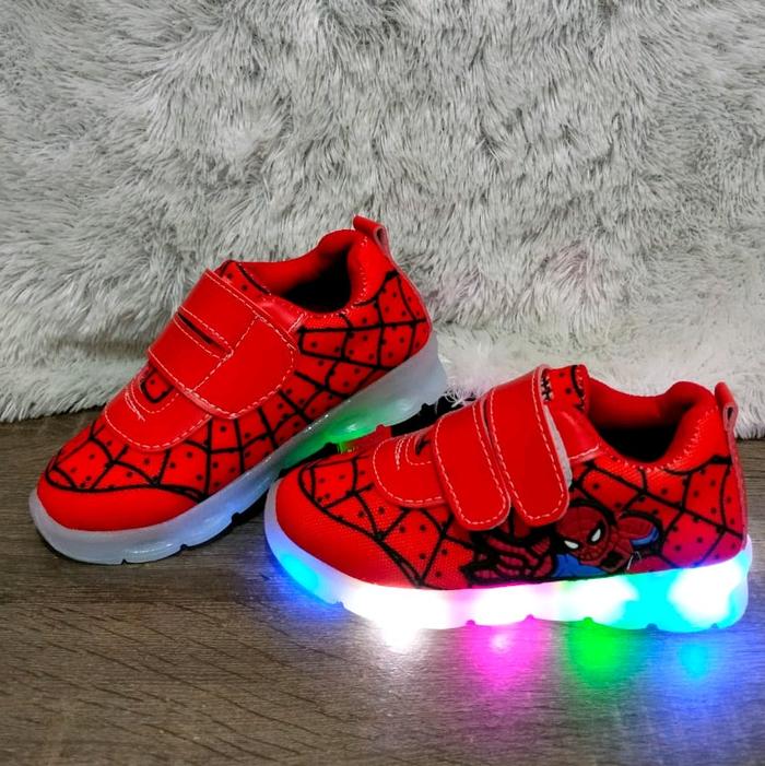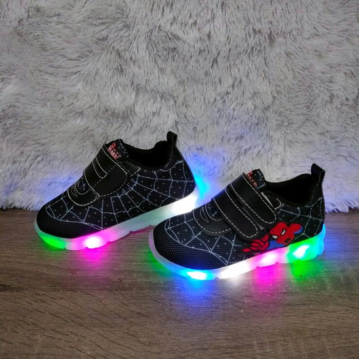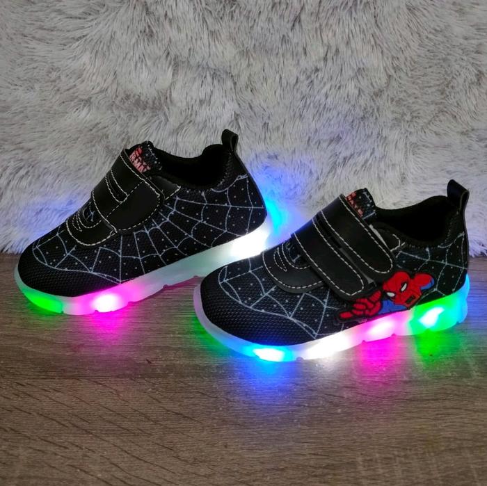 SEPATU FASHION LED ANAK LAKI-LAKI SPIDERMAN SEPATU NYALA 22 SAMPAI 32 - HITAM SPIDERMAN, 30