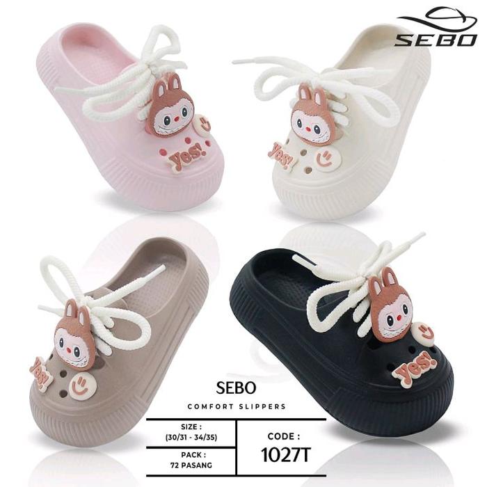 TERLARIS SANDAL SEPATU TERBARU SELOP BAIM ANAK PEREMPUAN USIA 2-9 THN TALI PITA EVA RINGAN EMPUK SEBO 1027 - KREM, 24-25