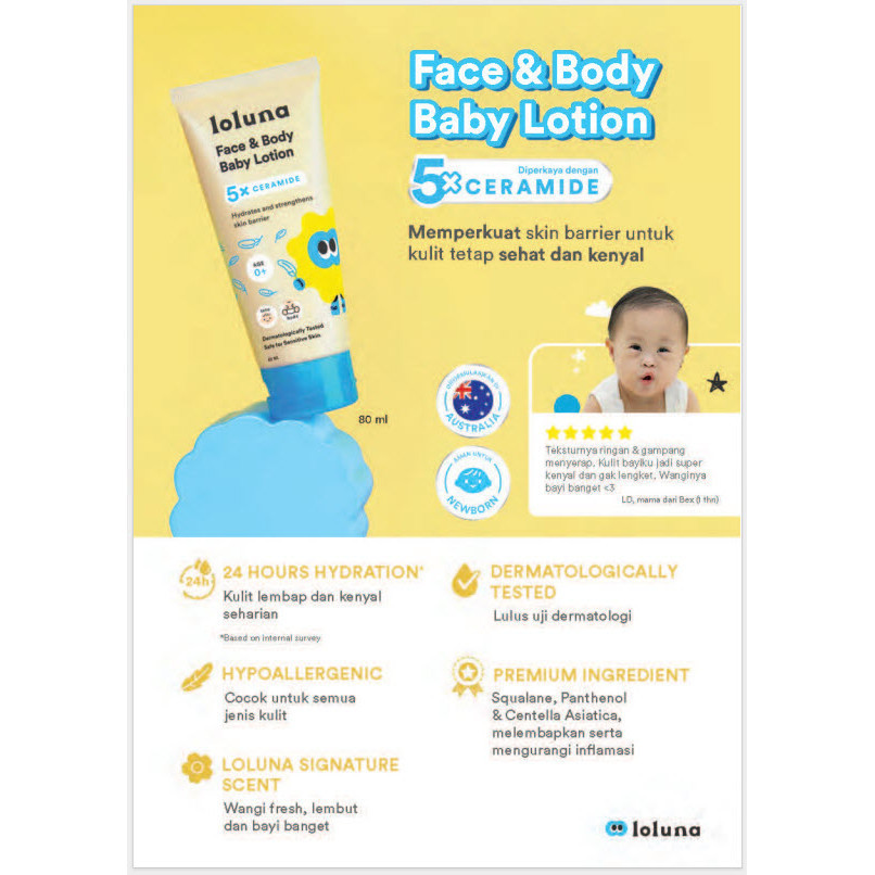 Loluna Face & Body Baby Lotion 80 mL - Krim Losion Wajah dan Tubuh Bayi Anak