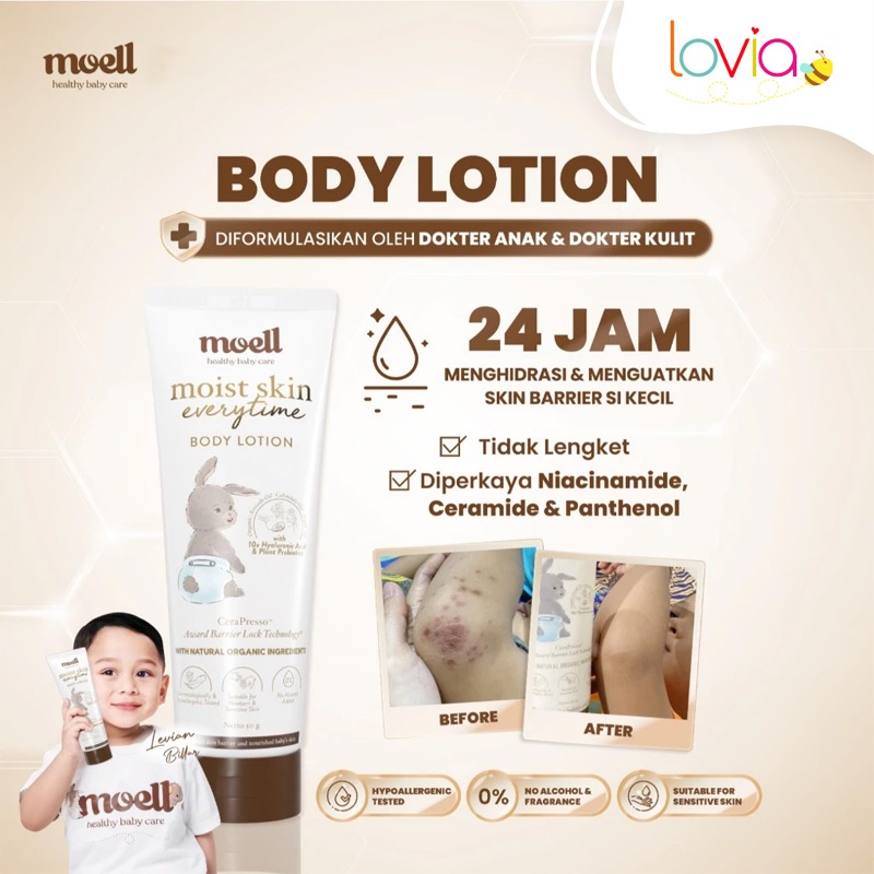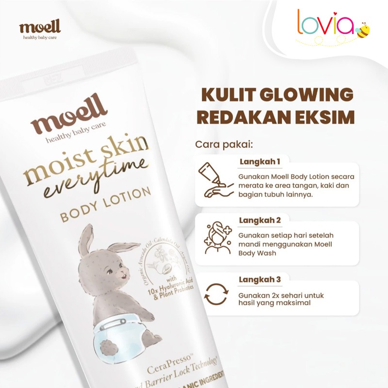 Moell Body Lotion Bayi 185gr - Body Lotion Baby With Organic Avocado Oil & 10x Hyaluronic Acid - Pelembab Kulit Bayi - N