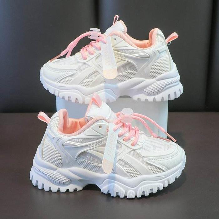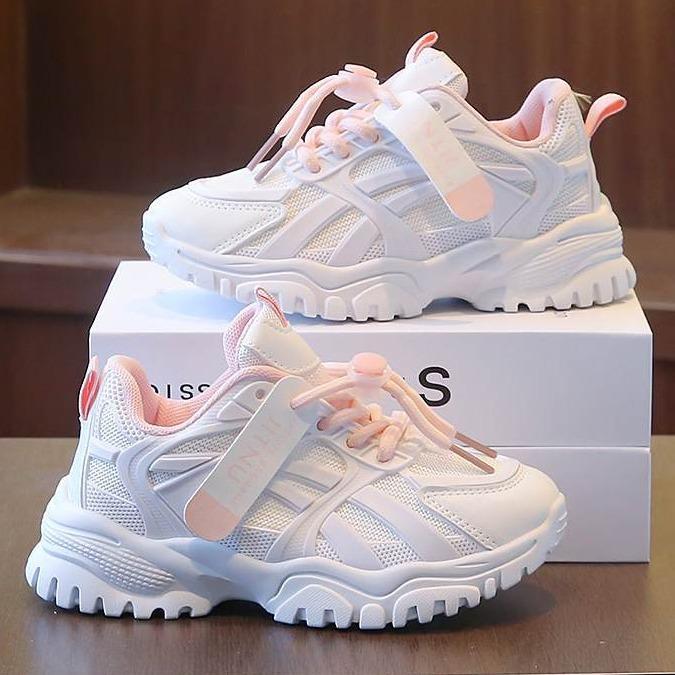 SEPATU SNEAKERS IMPORT FASHION ANAK CEWEK PEREMPUAN PRODUK SESUAI GAMBAR SIZE 26-37 BISA SP-019 - PINK, 28