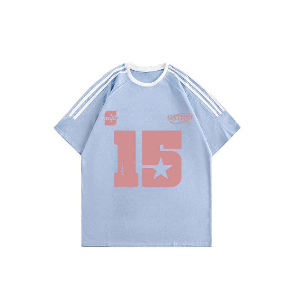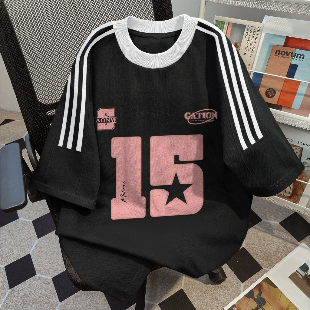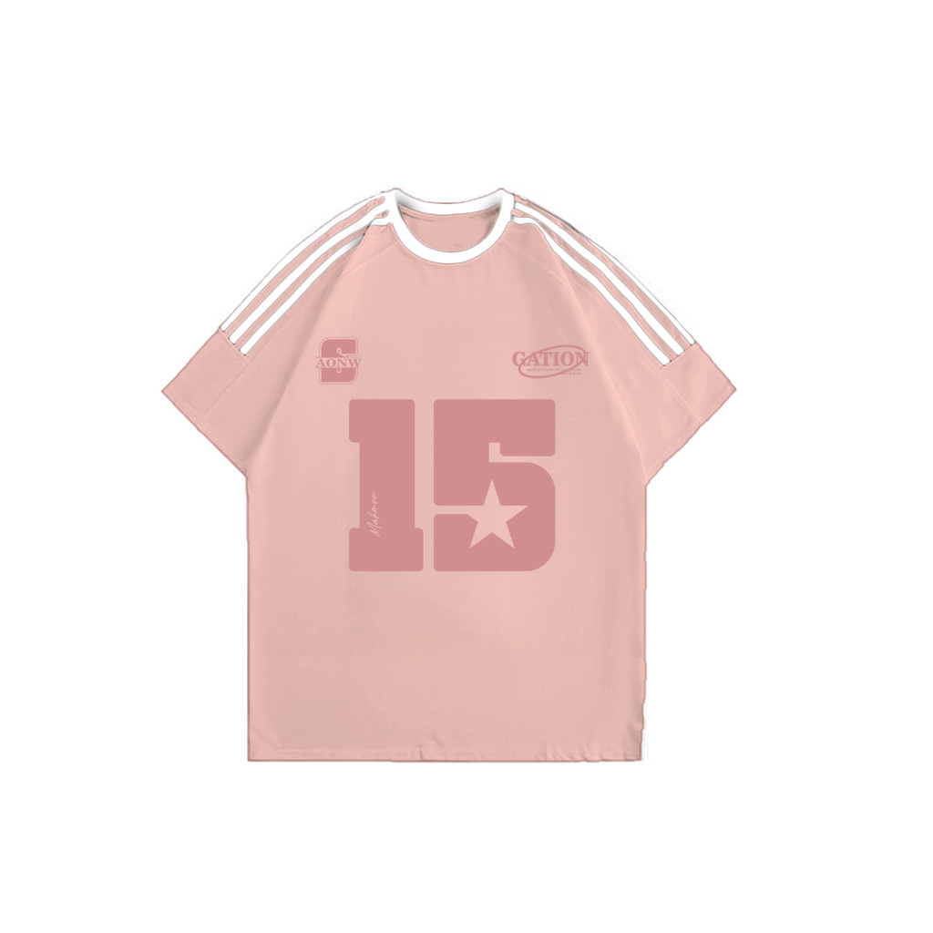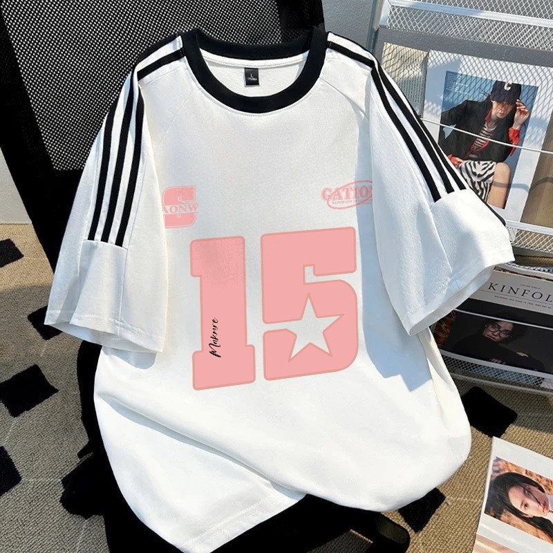 Jessica Baju Wanita Putih Blk Kaos Premium Lengan Pendek Oversize Kaos Merah Muda Dengan Tiga Garis Dan Nomor 15 Atasan