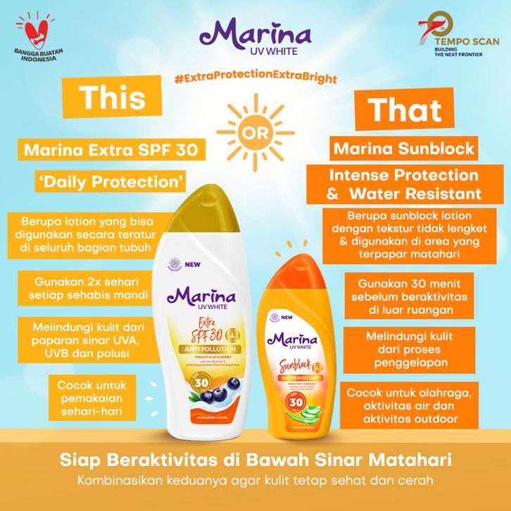 MARINA UV White Extra & Sunblock SPF 30 PA++ || Marina UV White Sunblock SPF 30 || Marina Hand Body Lotion UV White