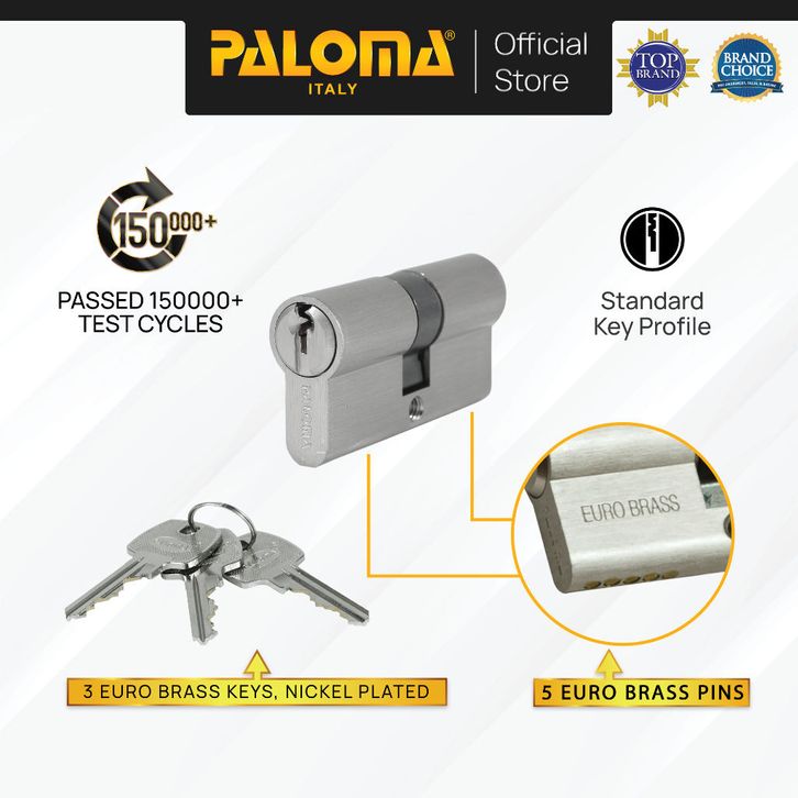 TERBARU PALOMA CLP 394 Cylinder Kunci Pintu Double Cylinder Silinder Ganda Standard Key Brass Kuningan Silver Grey Abu