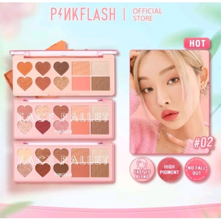 PINKFLASH OhMyLove 4 in 1 Palet Wajah Ganda Eyeshadow & Blush On & Highlighter & Kontur