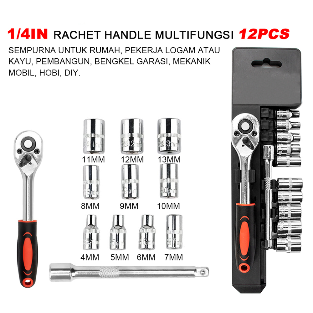 UneedTools Kunci Shock Set 1/2''-1/4''12Pcs kunci socket motor lengkap socket CR-V Socket Wrench Set