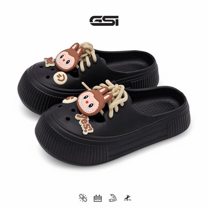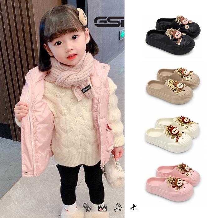 【GSI SHOES】SANDAL ANAK PEREMPUAN SENDAL SELOP BAIM LUCU GAYA KEKINIAN BAHAN KARET EVA ELASTIS EMPUK DAN RINGAN FASHION ANAK - BLACK, 24 - 25