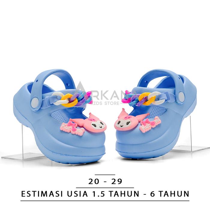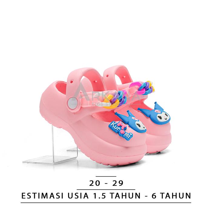 ARKANA - SEPATU SANDAL ANAK PEREMPUAN / BABY GIRL'S FLAT SHOES BALLET EVA MODEL KARAKTER KUROMI NEW FLIP FLOP BOHOPANNA - PINK, 28-29
