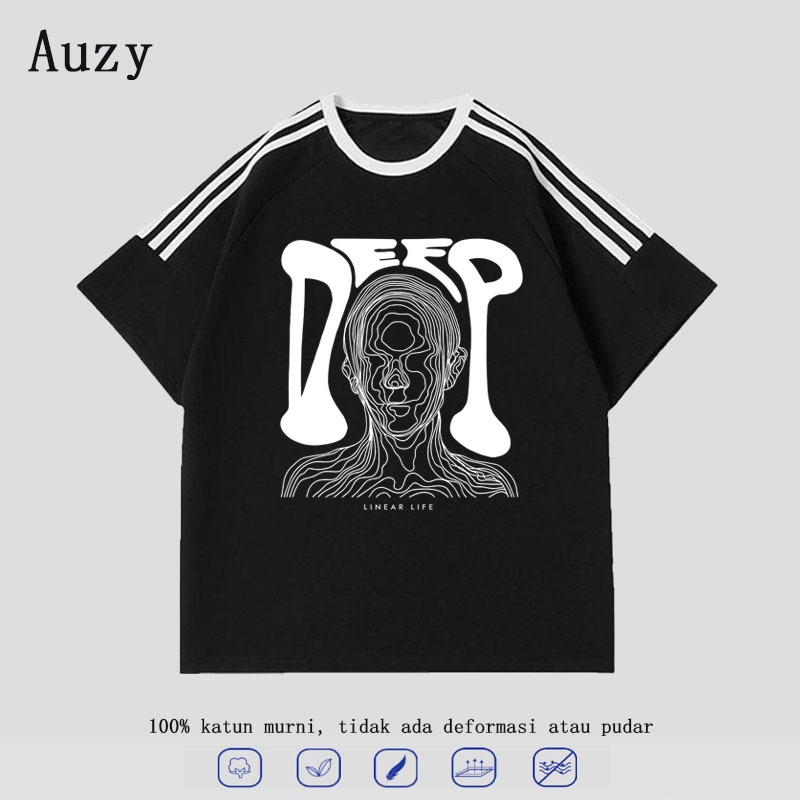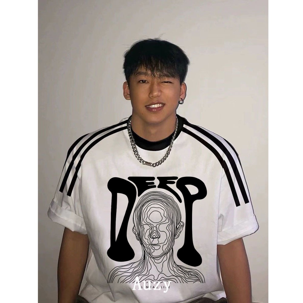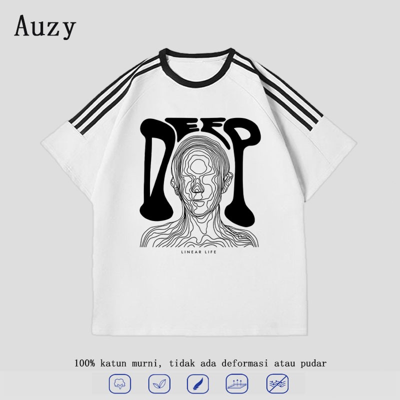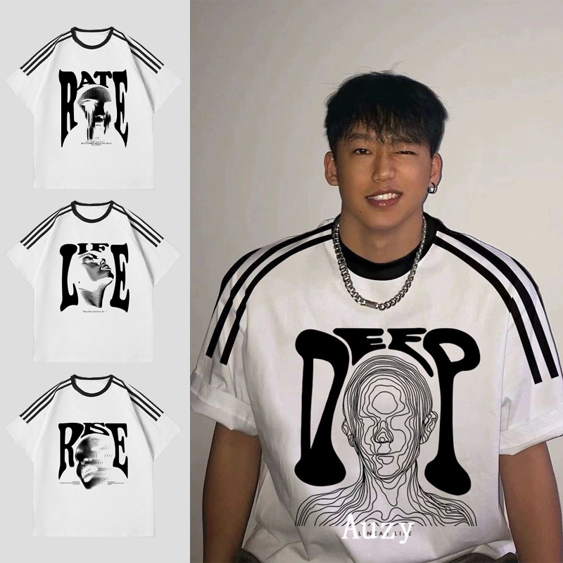 AUZY DEEP Gaya Amerika jersey Kaos Pria Dicetak Tiga Garis Kaos Lengan Pendek Pria Lengan Pendek Atasan Putih kaos termu