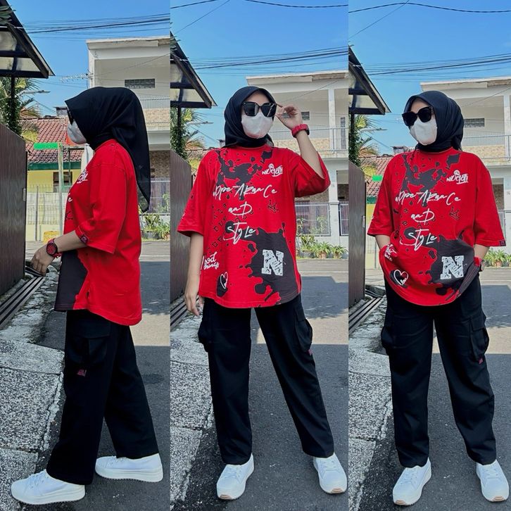 NIO - One Set Cargo Setelan Celana Oversize_Setelan Cargo Terbaru Setcel Kaos Katun Combed Printing