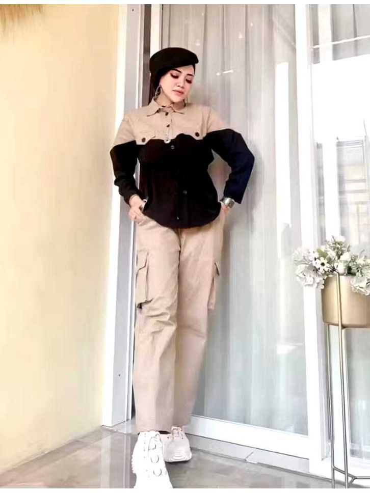 BAJU WANITA SETELAN POLOS KOMBINASI SET CARGO LENGAN PANJANG CELANA PANJANG