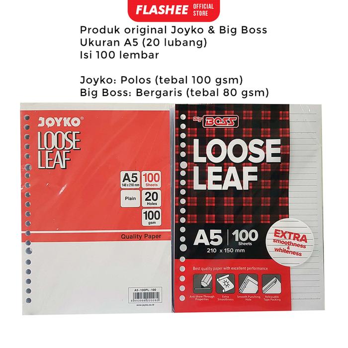 Flashee Kertas Binder A5 Loose Leaf Kertas Paper File Note Isi Binder A5 100 Lembar Termurah Stationery - A5 BERGARIS