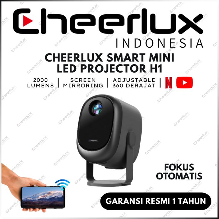 Proyektor Cheerlux H1 Android Wifi Mirroring Terdapat Handle Tri. 2000 Lumens 720P 360° Rotating Projector Elektrik
