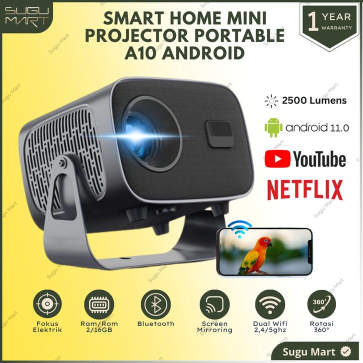 Proyektor Android | Proyektor Mini Led A10 Android 2500 Lumens 2 / 16 GB | Proyektor Android Mini | Proyektor Android