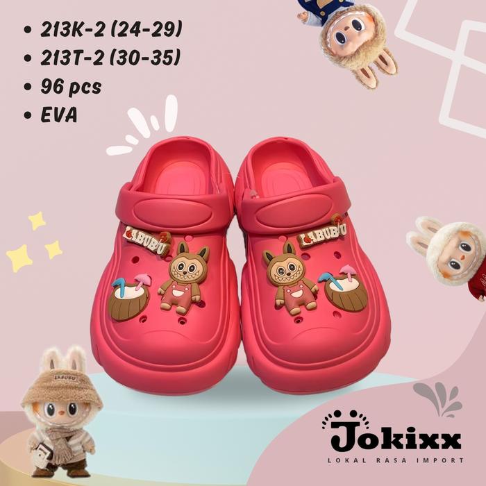 (213K-2/T-2) SANDAL LET BAKPAO JOKIXX EVA ANAK LAKI PEREMPUAN BAN KARAKTER LABUBU POPMART COCONUT LUCU EMPUK NYAMAN / UKURAN 24-35 - BIRU MUDA, 24-25