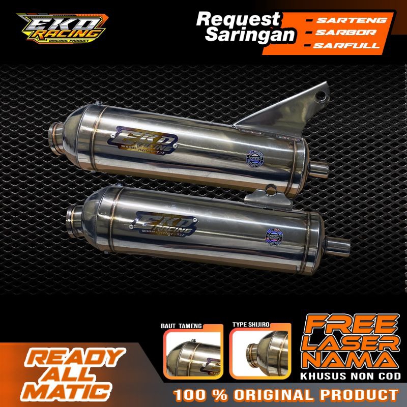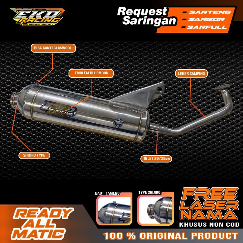 AEROX OLD, AEROX NEW, NMAX OLD, NMAX NEW, VARIO 160, PCX 160, PCX 150, VARIO KZR/125 BOHLAM, VARIO 110 KARBU, VARIO 110 INJEKSI, VARIO 125 LED OLD, VARIO 150 LED OLD, VARIO 125 LED NEW, VARIO 150 LED NEW, BEAT DELUXE, BEAT KARBU, BEAT 2019 KE BAWAH, BEAT 2020 KE ATAS, SCOOPY 2020 KE BAWAH, SCOOPY 2021 KE ATAS, MIO SPORTY/SMILE, SOUL KARBU, MIO M3/X RIDE 125, MIO J/X-RIDE 115, MIO Z, FINO 115, FINO 125, GRAND FILANO, FAZZIO, SPACY, GENIO, MOTOR LAIN CHAT TOKO, Cuma silincer