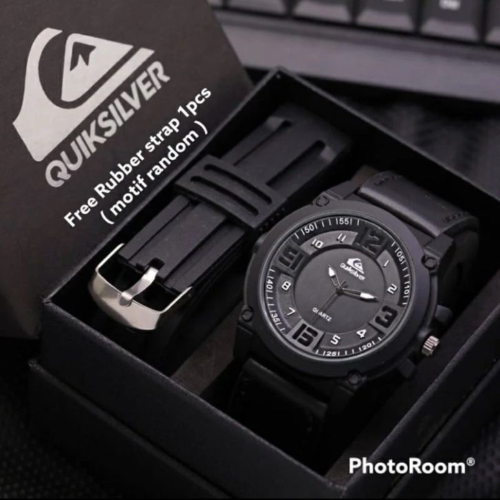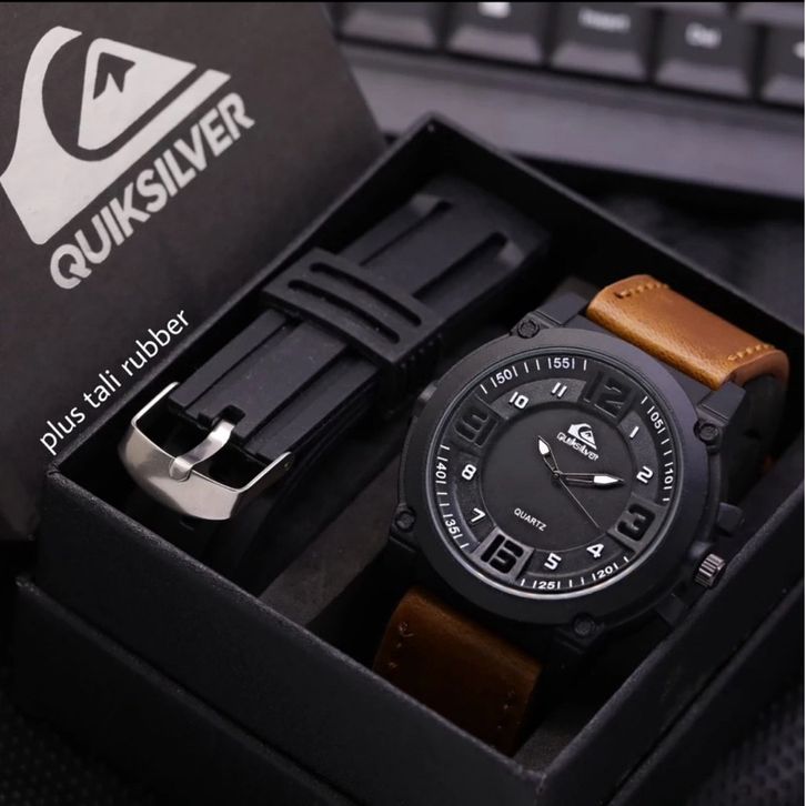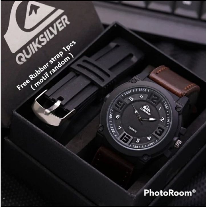 Grosiran Jam Tangan Pria / Cowok Quiksilver Kulit Fashion 93603Ls Free 1 Tali Rubber & Box