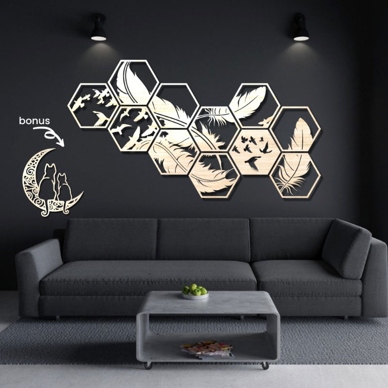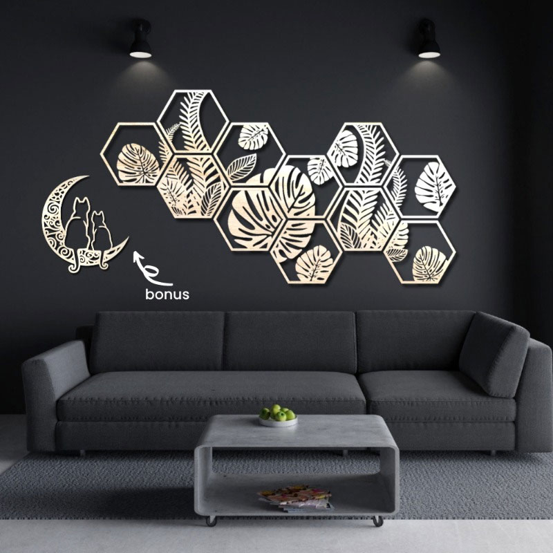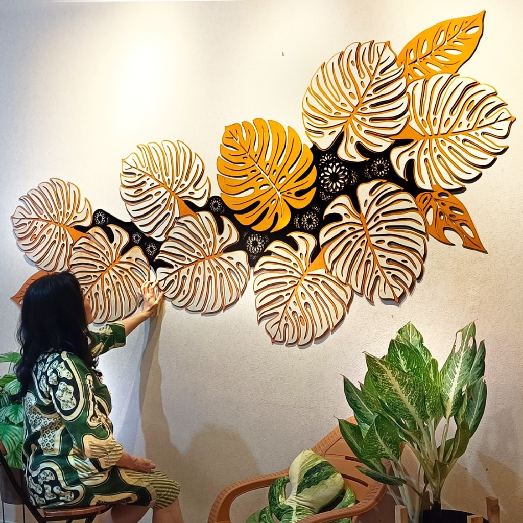 Set Hiasan Dinding Ruang Tamu Dekorasi Motif Daun Janda Bolong Pajangan Kamar Tidur