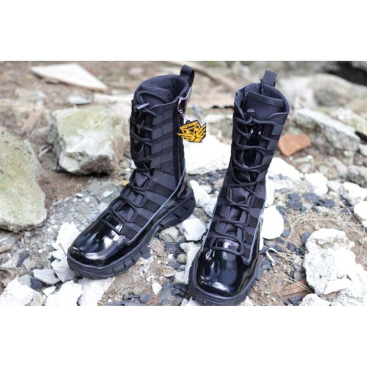 Sepatu Pdl Ninja Tni Polri Kulit Kilap Anti air Sleting Sol Keliling Merk Brotrher New Ninja kilap