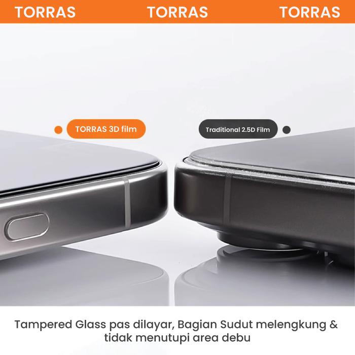 TORRAS Tempered Glass 3D Screen Protector untuk iPhone 16 Pro Max 16Pro 16 Plus