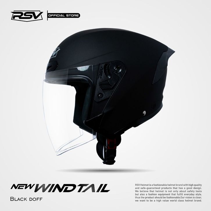 Helm Motor Half Face Original RSV NEW WINDTAIL BLACK DOFF SINGLE VISOR SNI DOT & ECE R22.05