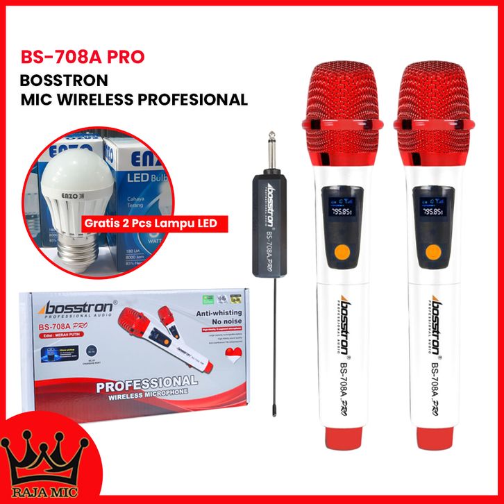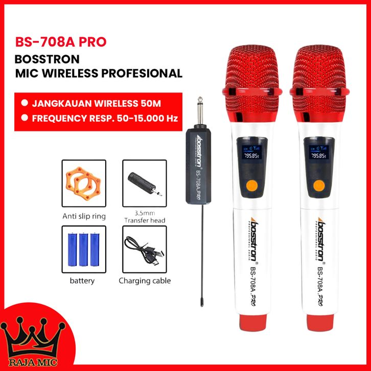 Bosstron Mic Wireless Karaoke BS-708A PRO Merah Putih Mik Mikrofon Bluetooth Microphone Tanpa Kabel