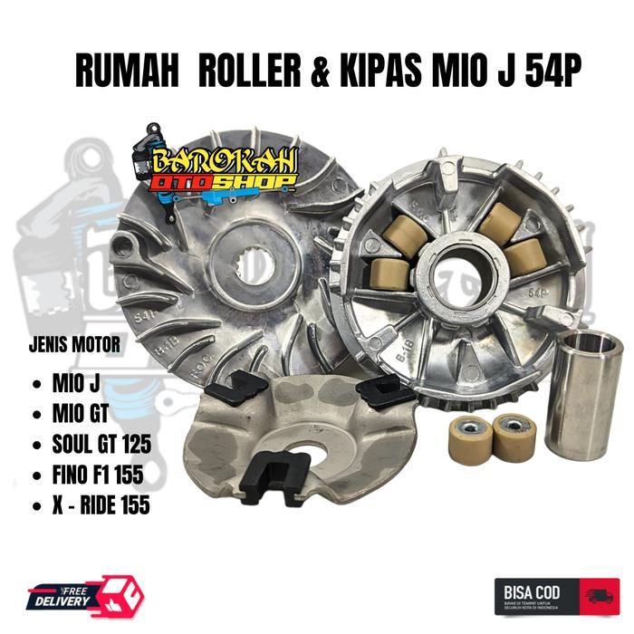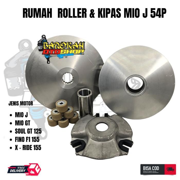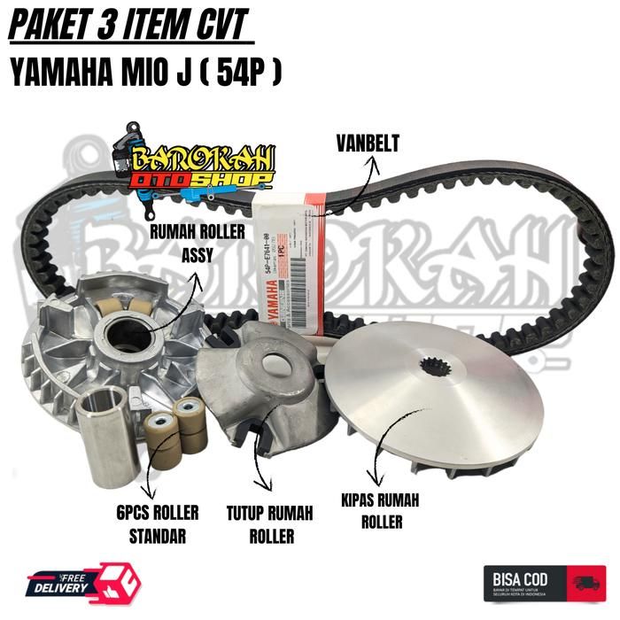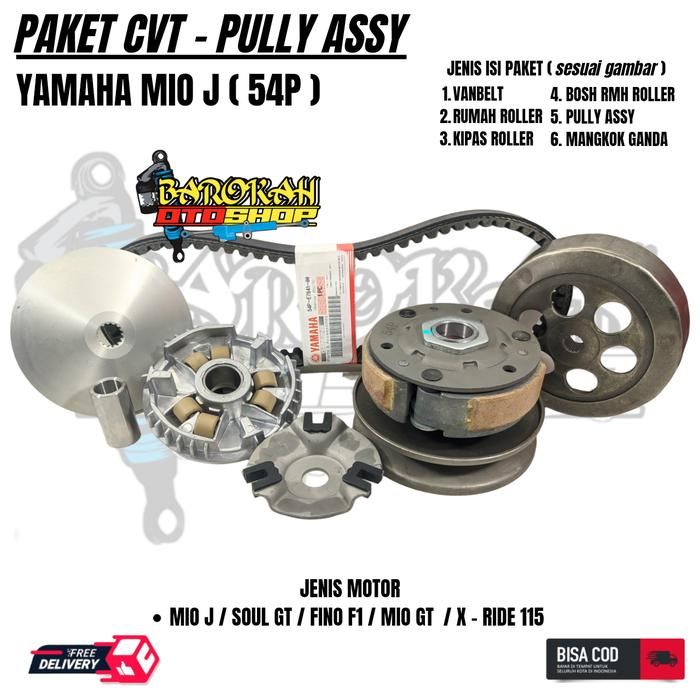 BEST SELLER PAKET KIRI CVT LENGKAP 4ITEM PULLY ASSY MIO J + RUMAH ROLLER ASSY + KIPAS RUMAH ROLLER + VANBELT MIO J / FI