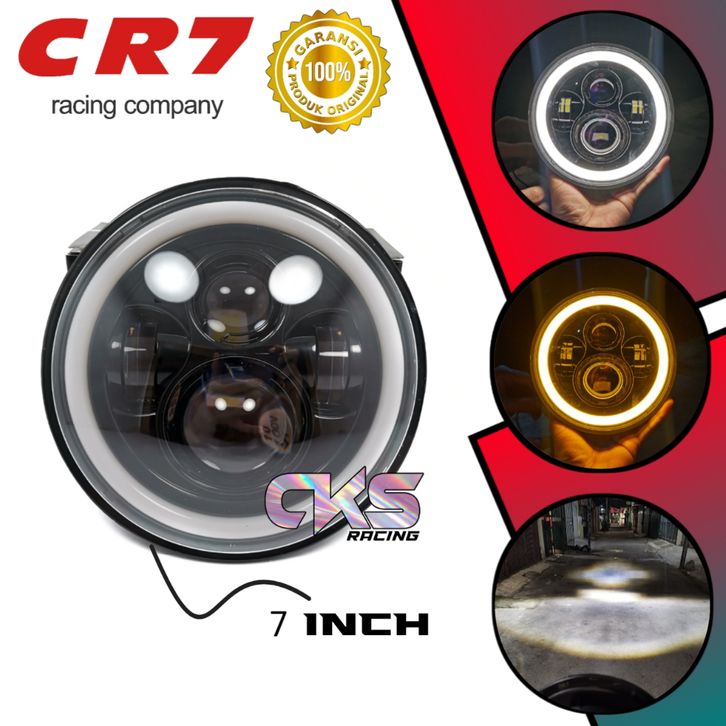 Lampu Projector Led Daimaker Harley 7 inch Jepp 4 LED High Low Daimaker Bulat Universal Motor Mobil