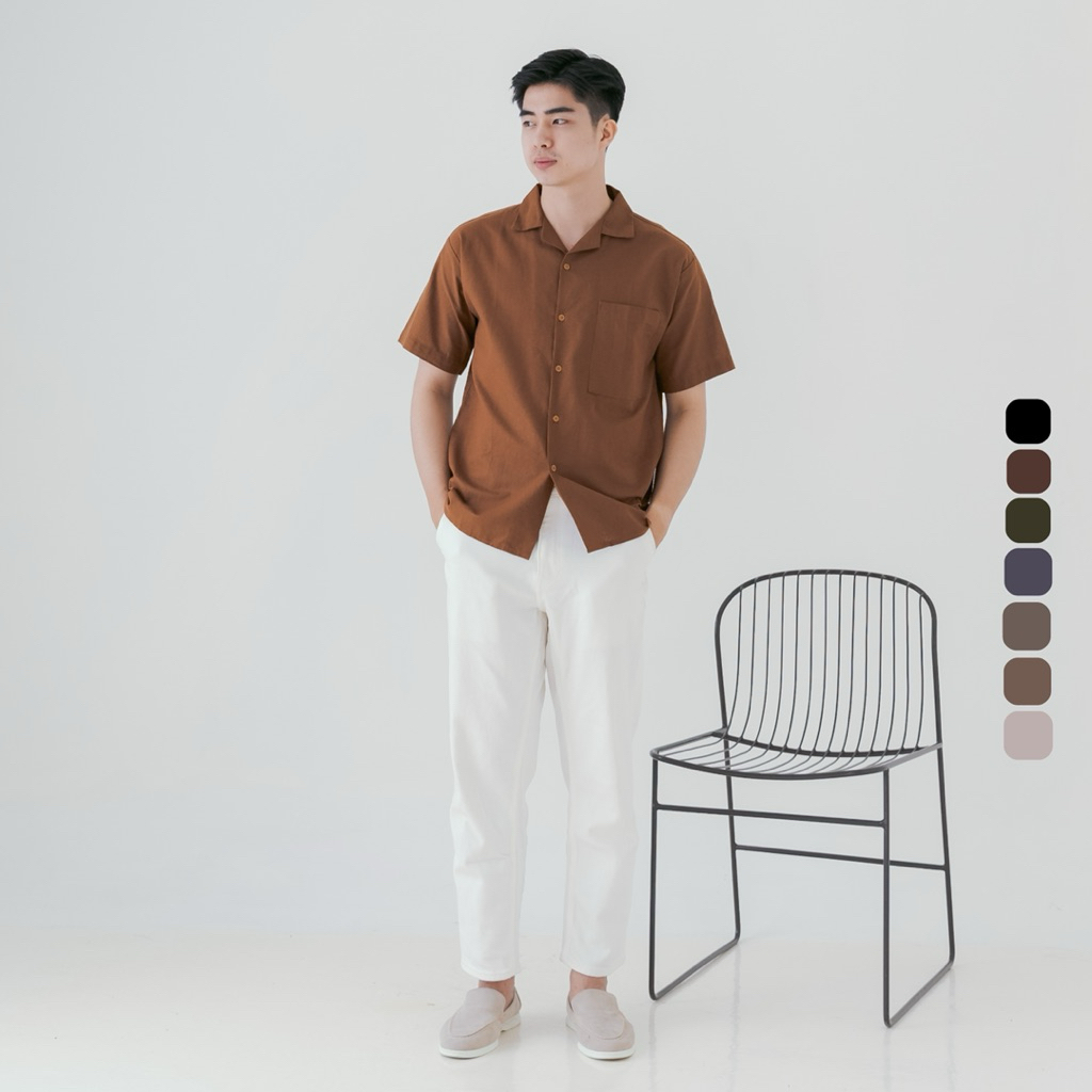 Osakaa - Cuban Linen Bowling Shirt | Kemeja Linen Lengan Pendek Brown