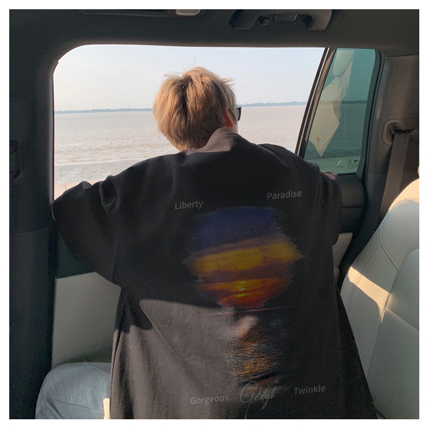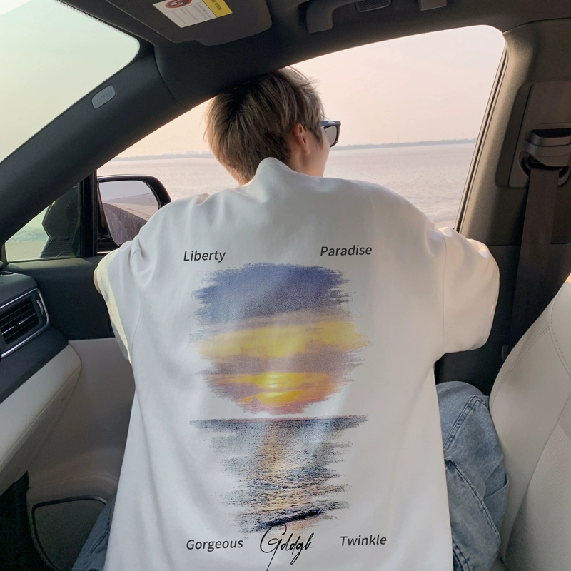 AUZY matahari terbenam Amerika pakaian pasangan kaos pria wanita T-shirt baju oversize t shirt distro