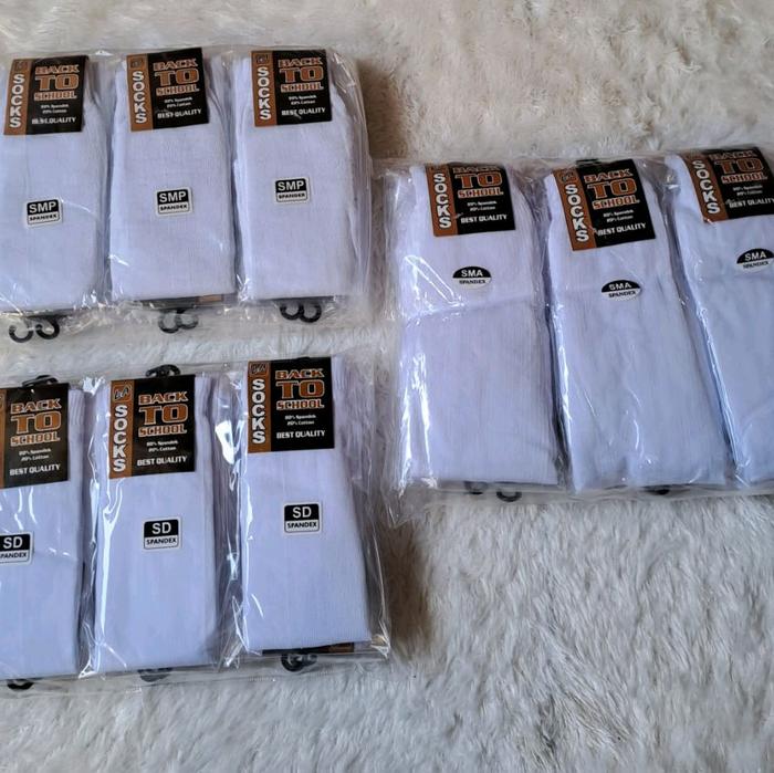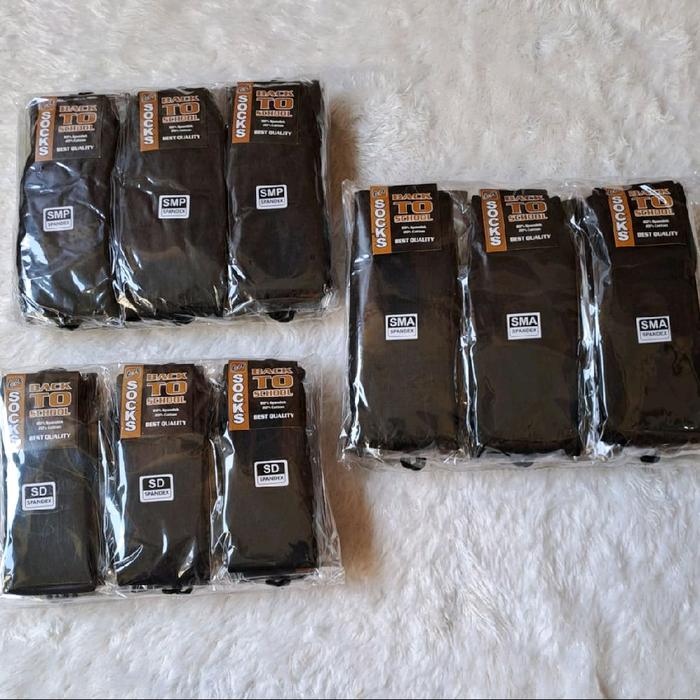 TERLARIS 12PASANG/1LUSIN KAUS KAKI ANAK SEKOLAH SD SMP SMA - HITAM PUTIH 12PASANG, SD