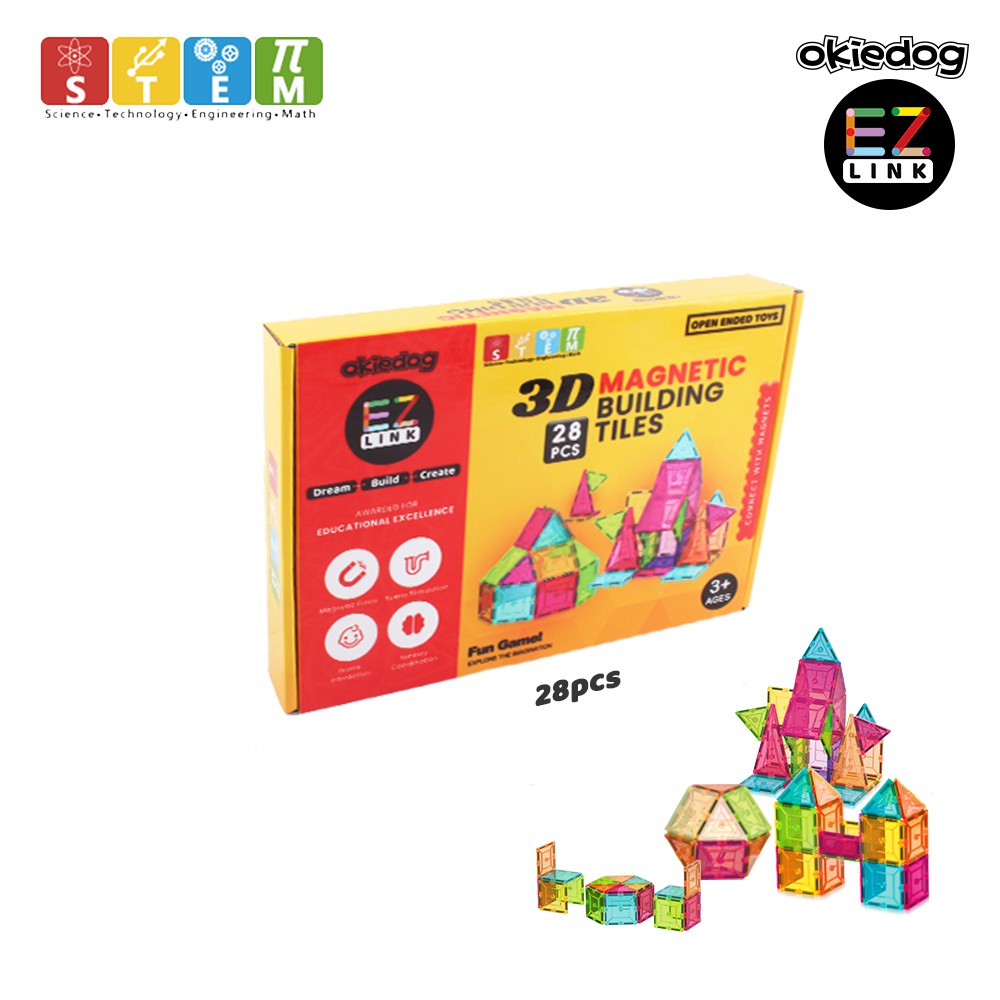 Okiedog EZLink 3D Magnetic Building Tiles 28PCS - Mainan Edukasi Anak (STEM)