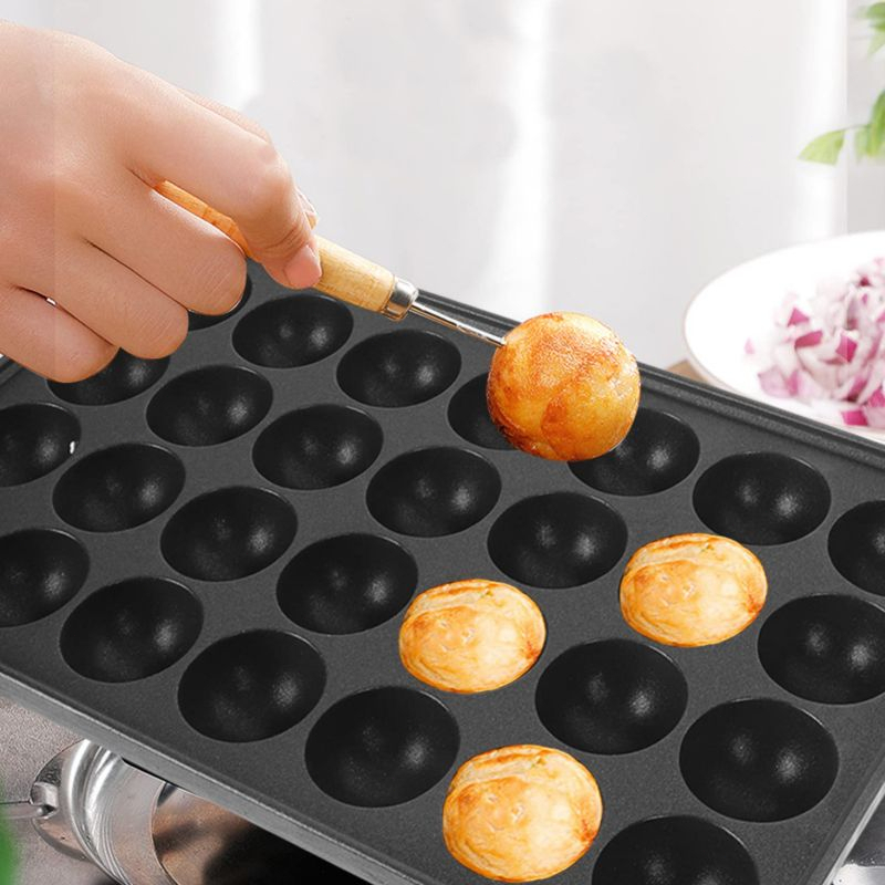 Cetakan Takoyaki 28 Lubang No-Stick Baking Tray Cetakan Takoyaki Anti Lengket Kecil Abby(Gratis 2 garpu)