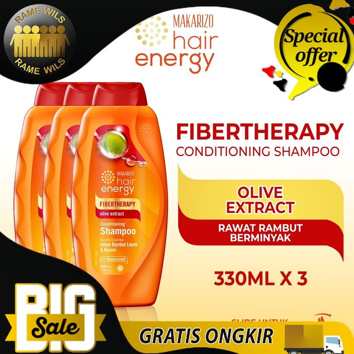 PAKET ISI 3 - Makarizo Hair Energy Fibertheraphy Conditioning Shampoo Olive 330 mL