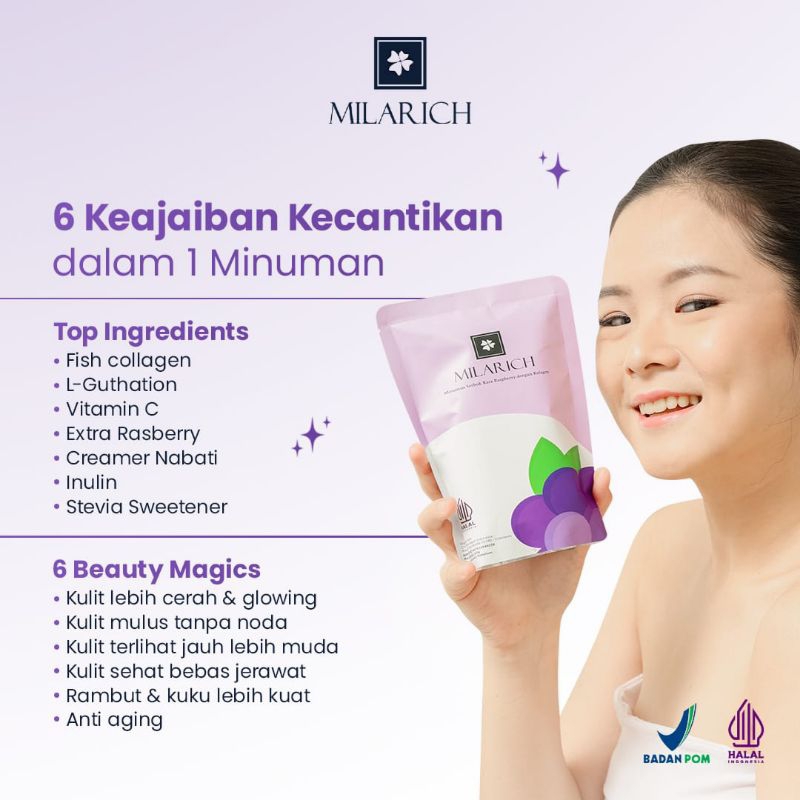 Milarich Premium Collagen Pemutih Badan Minuman Pemutih Wajah | Minuman Pemutih Booster Kolagen Pemutih Untuk Kecantikan
