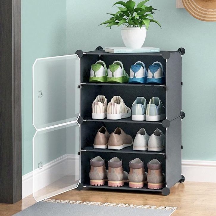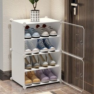 SHENAR Rak Sepatu 4 Susun Tertutup Anti Debu Plastik Box Rak Multifungsi Rak Portable
