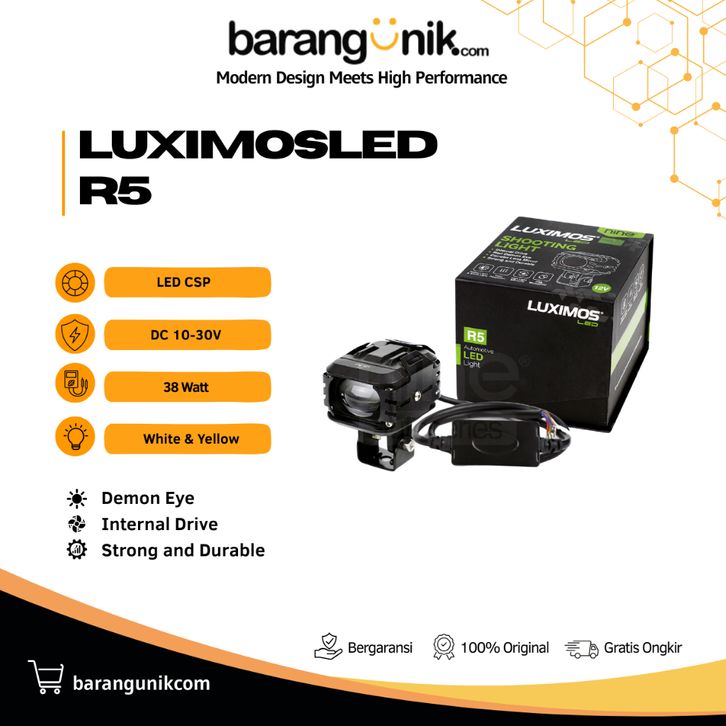 Lampu Tembak Laser 38 Watt Original R5 LUXIMOS Super Terang Waterproof Putih Kuning Tembus Hujan