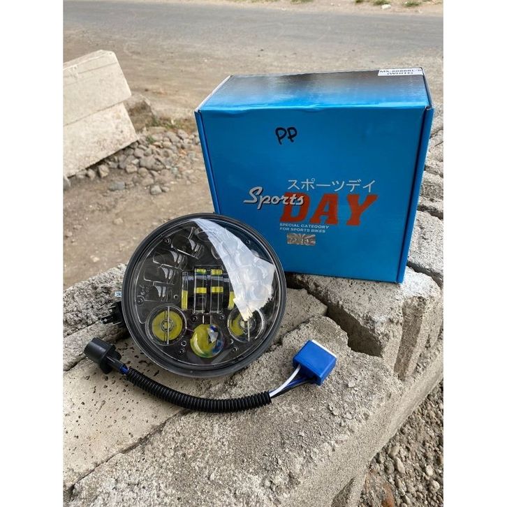 LAMPU DEPAN 5 ,75 INCH SENJA BIRU PUTIH 16 LED DAY ORI FUNGSI RITING ORANGE CB GL KING SPORTDAY