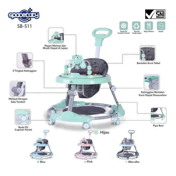 BABY WALKER SPACEBABY SB 511 MAINAN MUSIK LAMPU SPACE BABY SB511 Alat Bantu Jalan Bayi ( ada musik