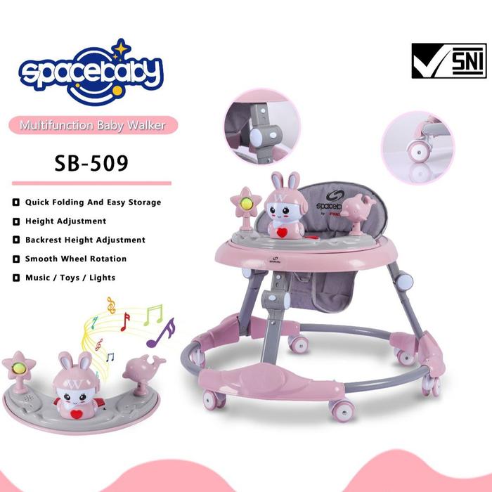 Baby Walker Spacebaby SB509 Musik Mainan Kelinci Alat Bantu Jalan Bayi